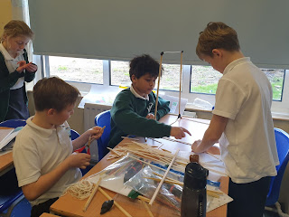 Lesson 1: To make an earthquake proof building I was really impressed to see how they worked collaboratively in groups to create a building from different materials. We then tested them to see if it was earthquake proof. Surprisingly, all buildings stayed intact (although some wobbled and toppled over.) From previous DT lessons, they had remembered that in order to make a stable structure they needed triangular joints.