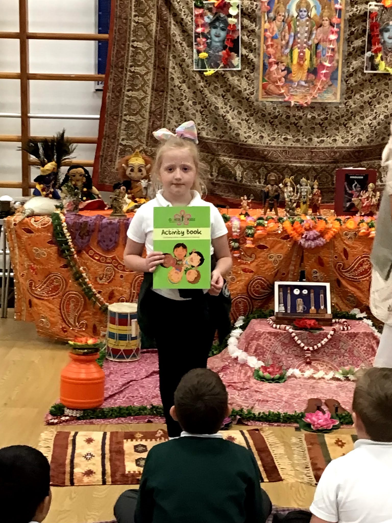 In year three, we have been learning about Hinduism, and the celebrations Hindu people observe. We were lucky to be visited by two amazing Hindu presenters in a workshop. To help the children's understanding of Diwali, some students were invited to dress up as the brave Lord Rama, his younger brother Lakshama and Sita, as well as the goddess Lakshmi.